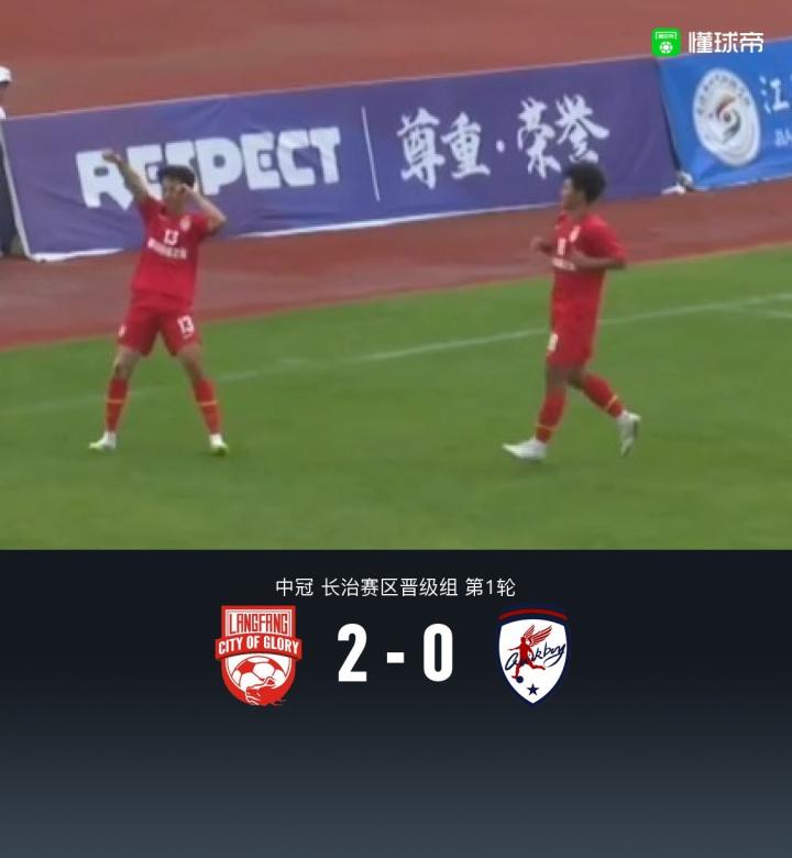第13分钟,误打误撞,皮球打在隋旭泽身上滚入球门,廊坊1-0