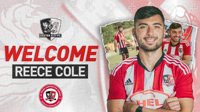 埃克塞特城俱乐部宣布,经过赛季前的试训,已经与中场里斯-科尔签下为期一年的合同。