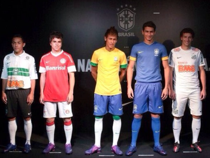 安德里戈与内马尔、甘索一起参加2012赛季球衣发布会