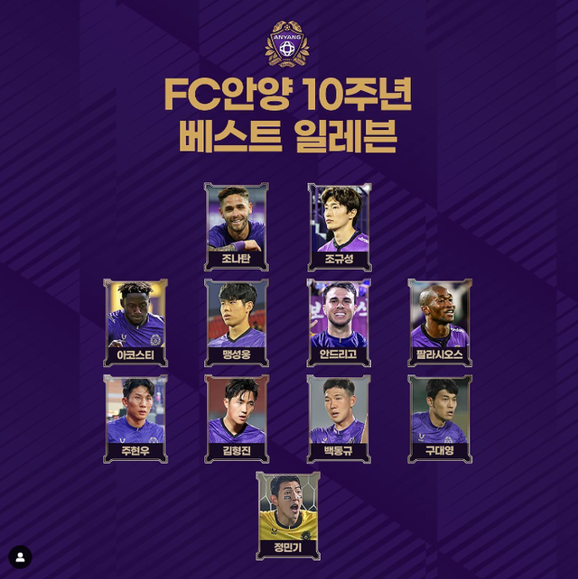 2023年初,安养举办了球队的10周年庆典。这支立志要当韩国巴萨的球队发布了球队10年队史上的最佳11人阵容,安德里戈和帕拉西奥斯双双入围最佳中场。