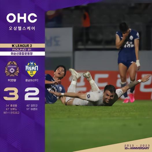 7月15日,安养客场挑战忠南牙山,安德里戈迎来了自己在韩国的告别战。在这场比赛中,战意爆表的安德里戈先是精准制导助攻新援布鲁诺攻入处子球,然后又在伤停补时阶段内切低射破门,完成了绝杀!赛后,安德里戈对安养表达了感激之情:“安养给了我来韩国踢球的机会,我想对市长和教练组以及所有人说声谢谢。”