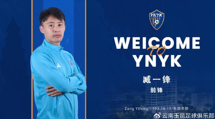北京时间7月21日,中乙云南玉昆官方宣布,现年29岁的沧州雄狮前锋臧一锋加盟球队。