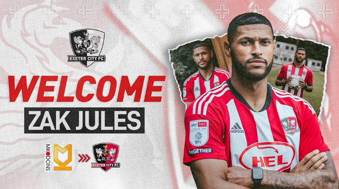 埃克塞特城俱乐部宣布,从米尔顿凯恩斯签下中后卫朱尔斯,转会费没有透露。