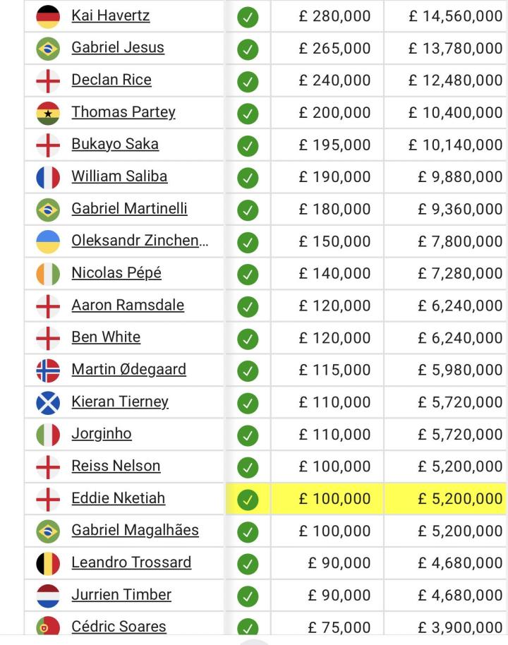 扫描下载懂球帝首页>动态> 懂球号> 据报道,哈弗茨是阿森纳薪水最高的球员,每周收入 ...