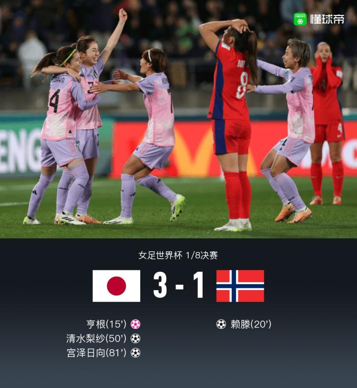 扫描下载懂球帝首页>动态> 蒙牛战报|日本女足3-1挪威女足晋级八强,清水梨纱建功