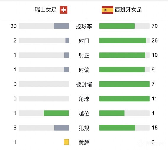 西班牙女足首发:23-科利、2-巴特列、4-伊雷妮-帕雷德斯、12-奥伊哈内-埃尔南德斯、14-科迪纳、6-邦马蒂、10-埃尔莫索、3-阿韦列拉、18-帕拉略洛、9-埃茜-冈萨雷斯、17-阿尔瓦-雷东多