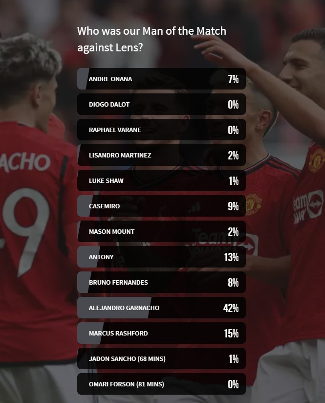 扫描下载懂球帝首页>动态> 加纳乔获42%投票当选最佳,拉师傅15%、安东尼13%、奥纳纳7%