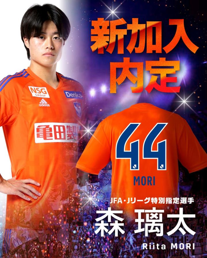 2023年8月10日,新潟天鹅宣布,早稻田大学后卫森璃太将在2024赛季加盟球队,身披44号球衣。此外,森璃太在10日还被日本足球协会(JFA)认证为“J联赛特别指定球员”。