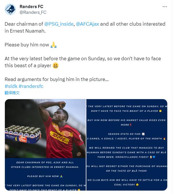 扫描下载懂球帝首页>动态> 懂球号> 骚操作丨官方喊话巴黎阿贾克斯赶紧买走对手球员丹麦...