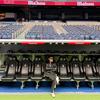 罗德里戈带着他的双胞胎在伯纳乌球场。