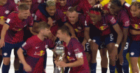 捧杯时刻,莱比锡众将举起冠军奖杯