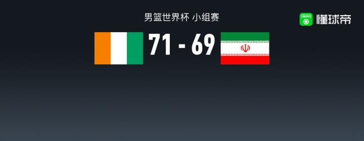 北京时间8月28日男篮世界杯 小组赛,科特迪瓦男篮对阵伊朗男篮。半场科特迪瓦男篮37-35伊朗男篮,最终科特迪瓦男篮71-69伊朗男篮。科特迪瓦男篮尼斯雷·祖祖阿17分4板1助,阿马度·西迪比10分5板;伊朗男篮亚哈查利19分5板3助,穆罕默德·阿米尼15分3板4助。