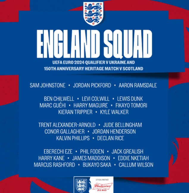 扫描下载懂球帝首页>动态> 英格兰大名单:凯恩领衔,科尔威尔首次入选,斯特林落选