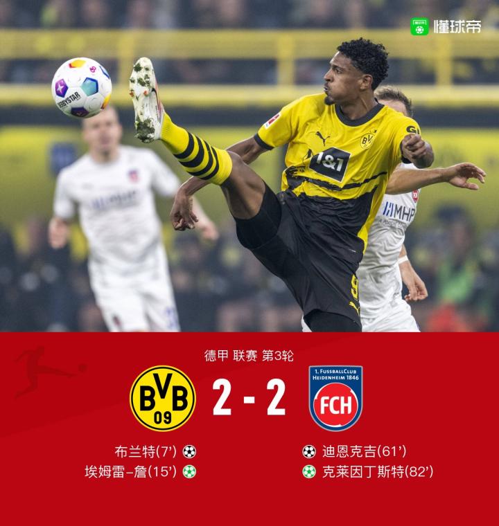扫描下载懂球帝首页>动态> 剑南春丨多特连丢两球2-2海登海姆,布兰特破门,阿莱送点