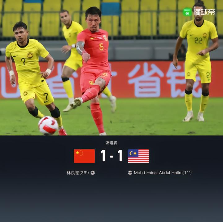 第36分钟,林良铭变向突破造定位球+恩德里克黄牌;随后吴曦开出左路定位球被顶出,林良铭大禁区前停球爆射破网,国足1-1扳平比分!