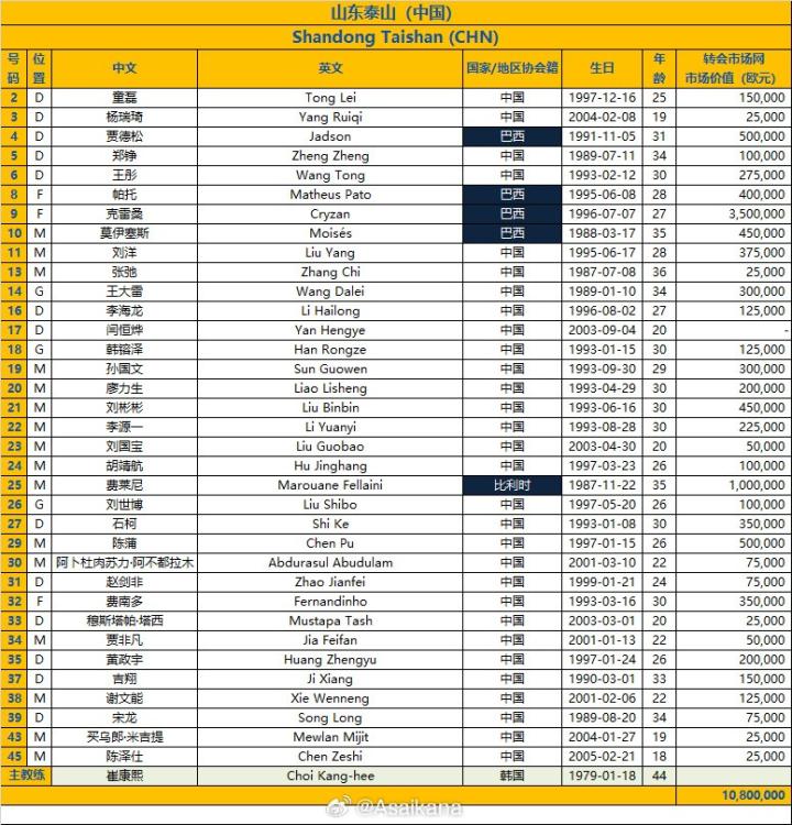 扫描下载懂球帝首页>动态> 山东泰山亚冠小组赛名单:5外援+费南多,与联赛保持一致