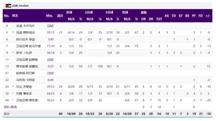 第二节,约旦单节打出19-14,上半场结束,两队战成31平。
