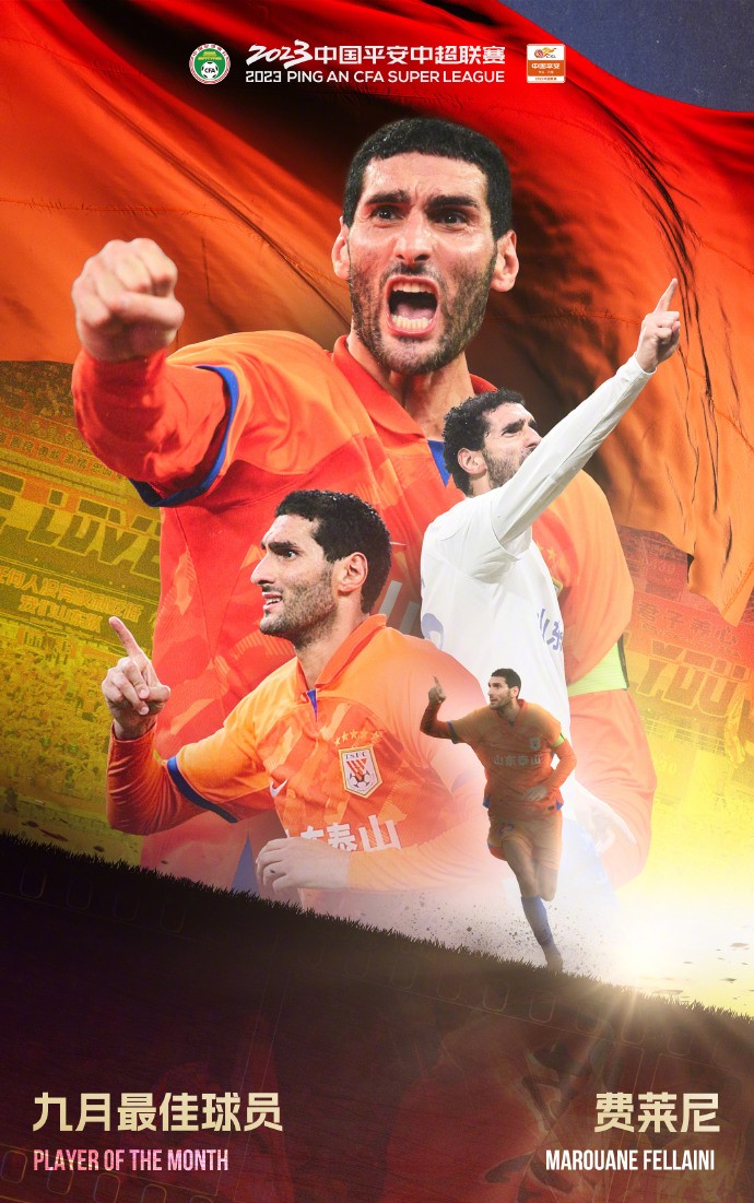 10月13日,中超联赛官方宣布,山东泰山球员费莱尼当选为9月的联赛最佳球员。