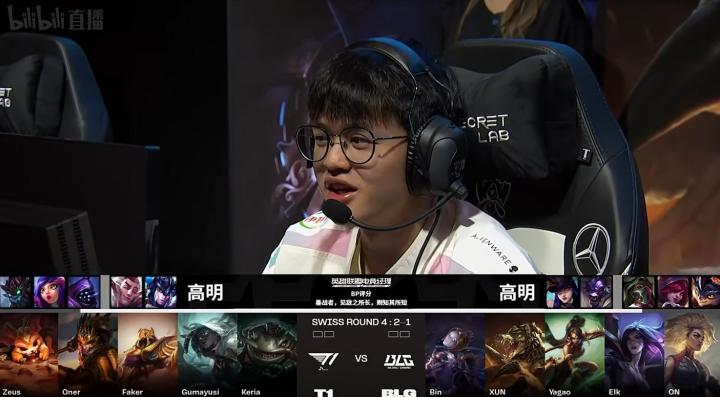 第9分钟,双方团战,T1收下先锋击杀BLG两人,Gumayusi塞纳收下双杀。
