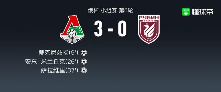 北京时间11月01日俄杯 小组赛 第6轮,莫斯科火车头主场对阵喀山红宝石。莫斯科火车头蒂克尼兹扬破门,安东-米兰丘克破门,萨拉维里破门。喀山红宝石。最终比分3-0。