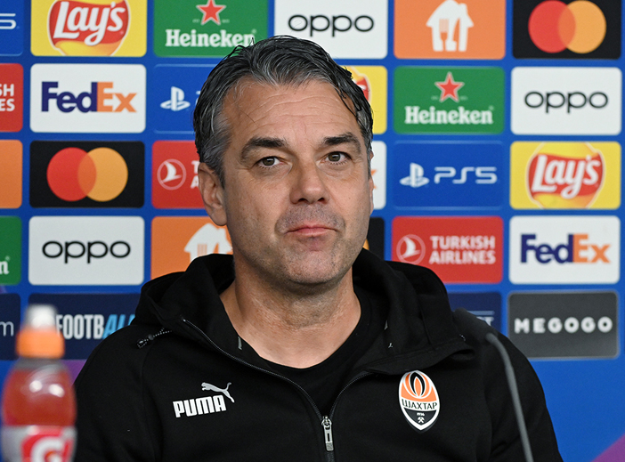 矿工队主教练马里诺·普西克在对阵巴塞罗那的比赛前举行的新闻发布会