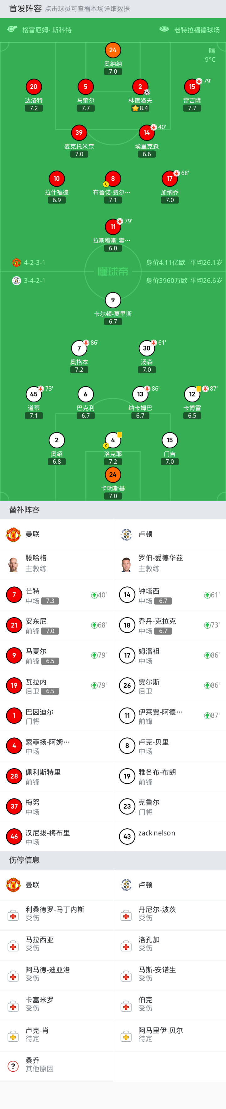 上场替补:73'18-乔丹-克拉克, 86'17-姆潘祖, 87'11-伊莱贾-阿德巴约, 86'26-贾尔斯, 61'14-钟塔西