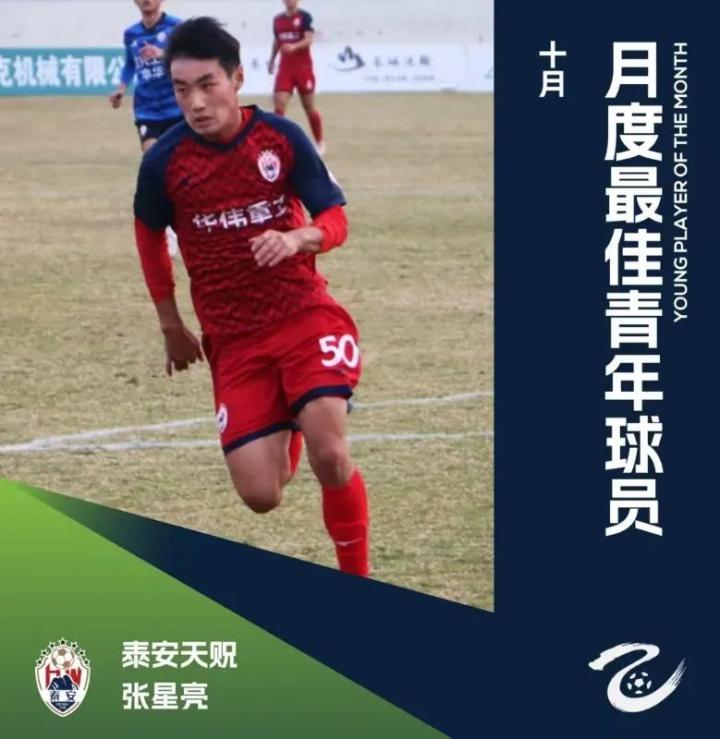 中乙官方宣布,泰安天贶中场张星亮当选10月最佳青年球员。