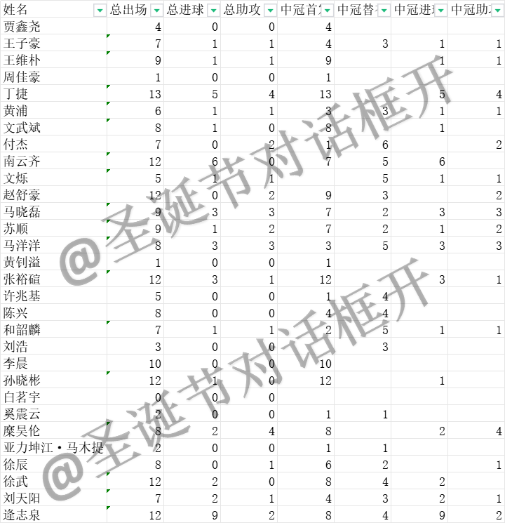 本赛季球队共有17名球员取得进球,16位球员献上助攻。