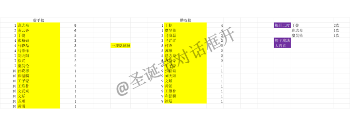 本赛季球队一个有3名球员四次上演梅开二度,队长丁捷完成梅开二度个梅开二度,其余二人分别是逄志泉和糜昊伦。