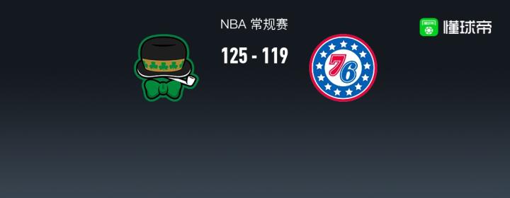 第四节凯尔特人普里查德拿下10分,76人贝弗利拿下8分,最终凯尔特人125-119战胜76人
