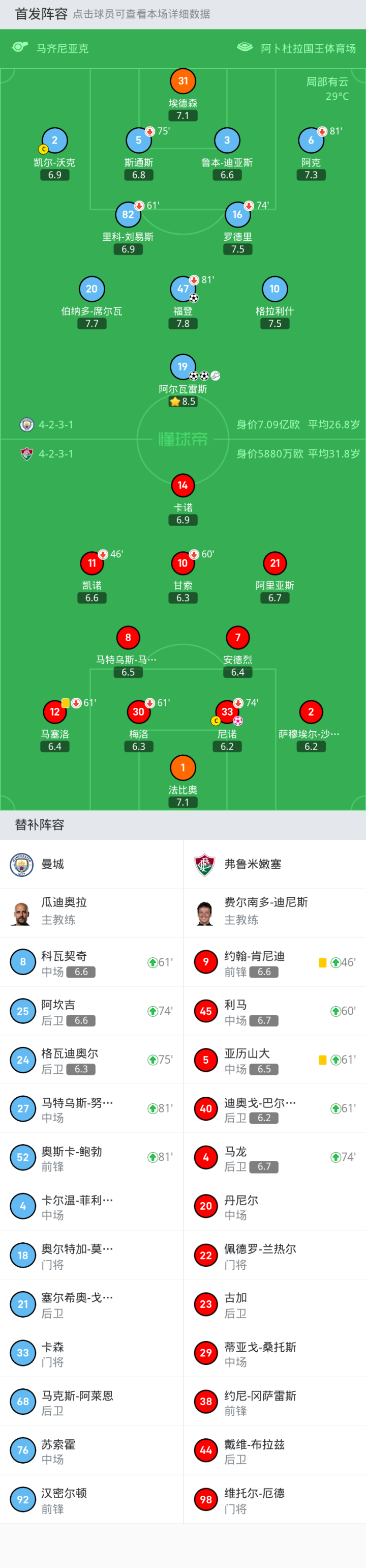 替换下场:81'6-阿克, 75'5-斯通斯, 74'16-罗德里, 81'47-福登, 61'82-里科-刘易斯