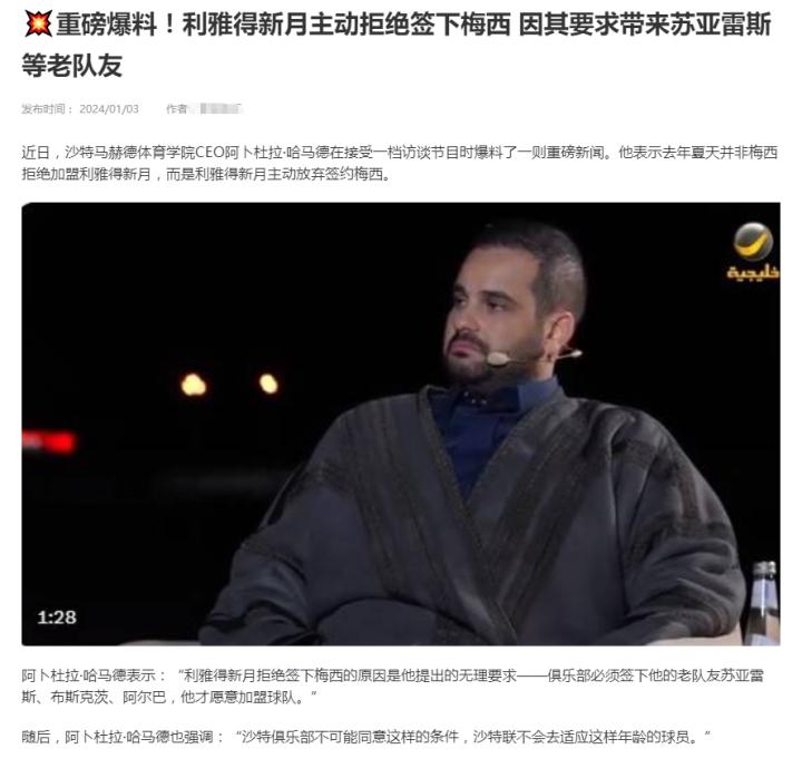 扫描下载懂球帝首页>动态> 懂球号> 反转了! 沙特马赫德体育学院CEO接受采访时爆了大料