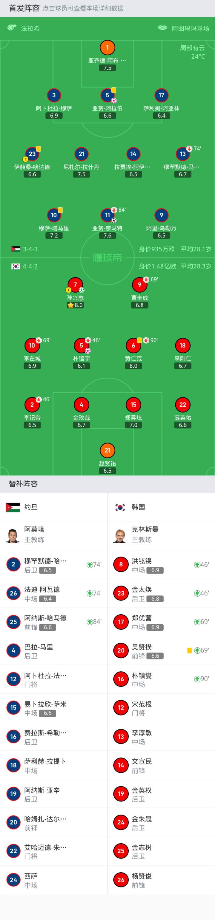 上场替补:74'26-法迪-阿瓦德, 84'25-阿纳斯-哈马德, 74'2-穆罕默德-哈谢什