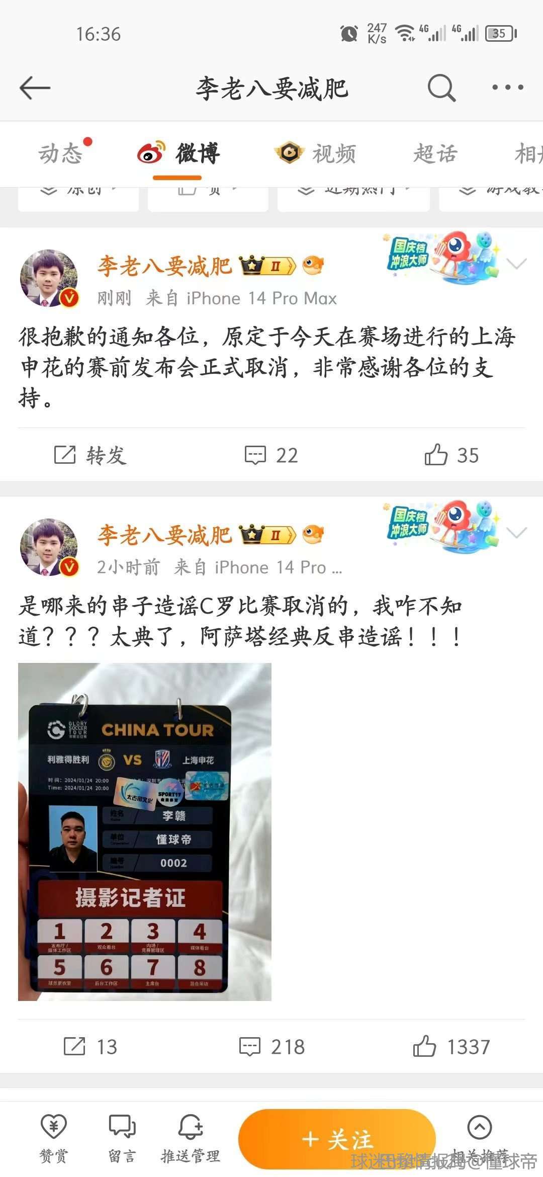 总裁也想上不想让中国球迷失望 不然大可以明天正常举行 总裁不上 就是怕大家失望 想让大家都看他 所以延期等他康复 大家多多理解