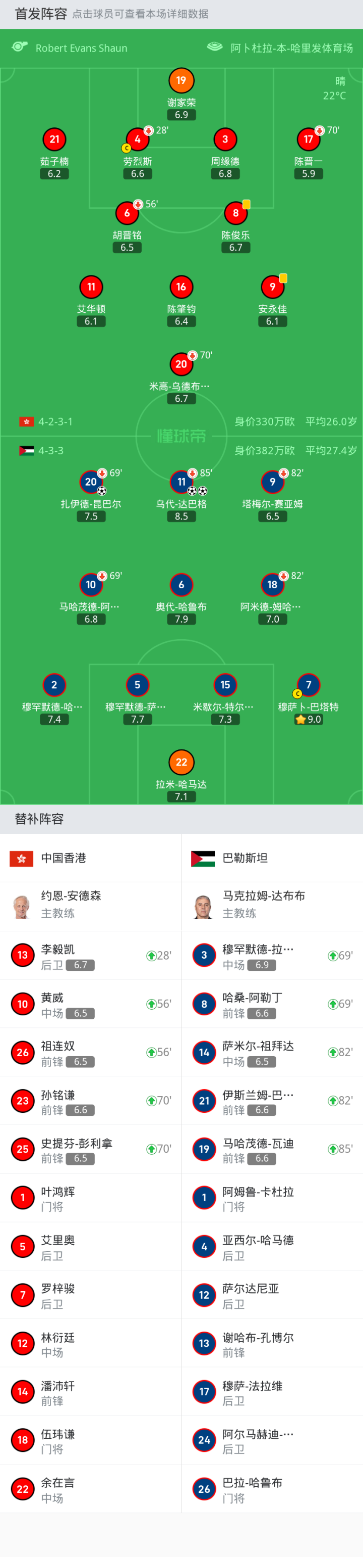扫描下载懂球帝首页>动态> 巴勒斯坦3-0中国香港,港足三战积0分出局,乌代-达巴格双响