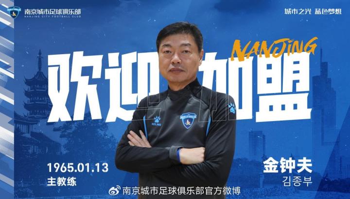 经南京城市足球俱乐部研究决定并与本人协商达成一致,即日起,正式聘请韩国籍名帅金钟夫出任俱乐部一线队主教练。