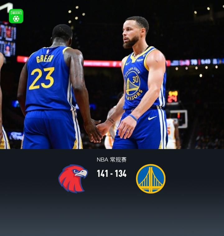 扫描下载懂球帝首页>动态> 库里空砍60分,勇士134-141老鹰,汤普森19中4仅得10分