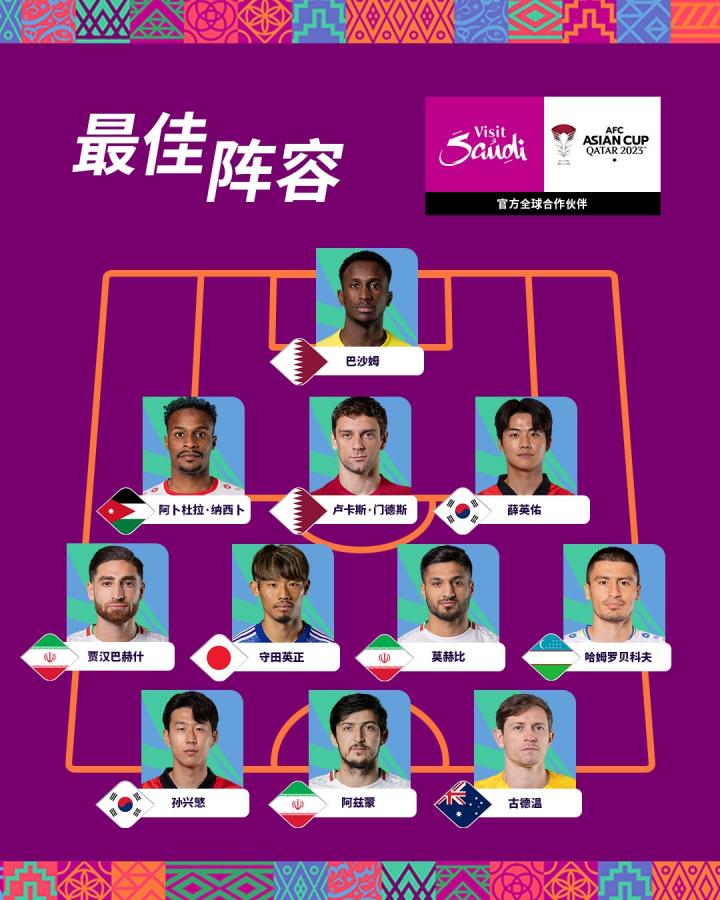 扫描下载懂球帝首页>动态> 亚洲杯1/4决赛最佳阵:孙兴慜领衔,古德温、阿兹蒙在列