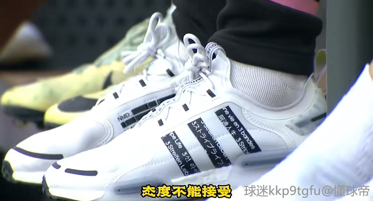 这双鞋子蹦不住了,人家都穿足球鞋,就他穿运动鞋,开场就没想踢,到了中场才和主办方说