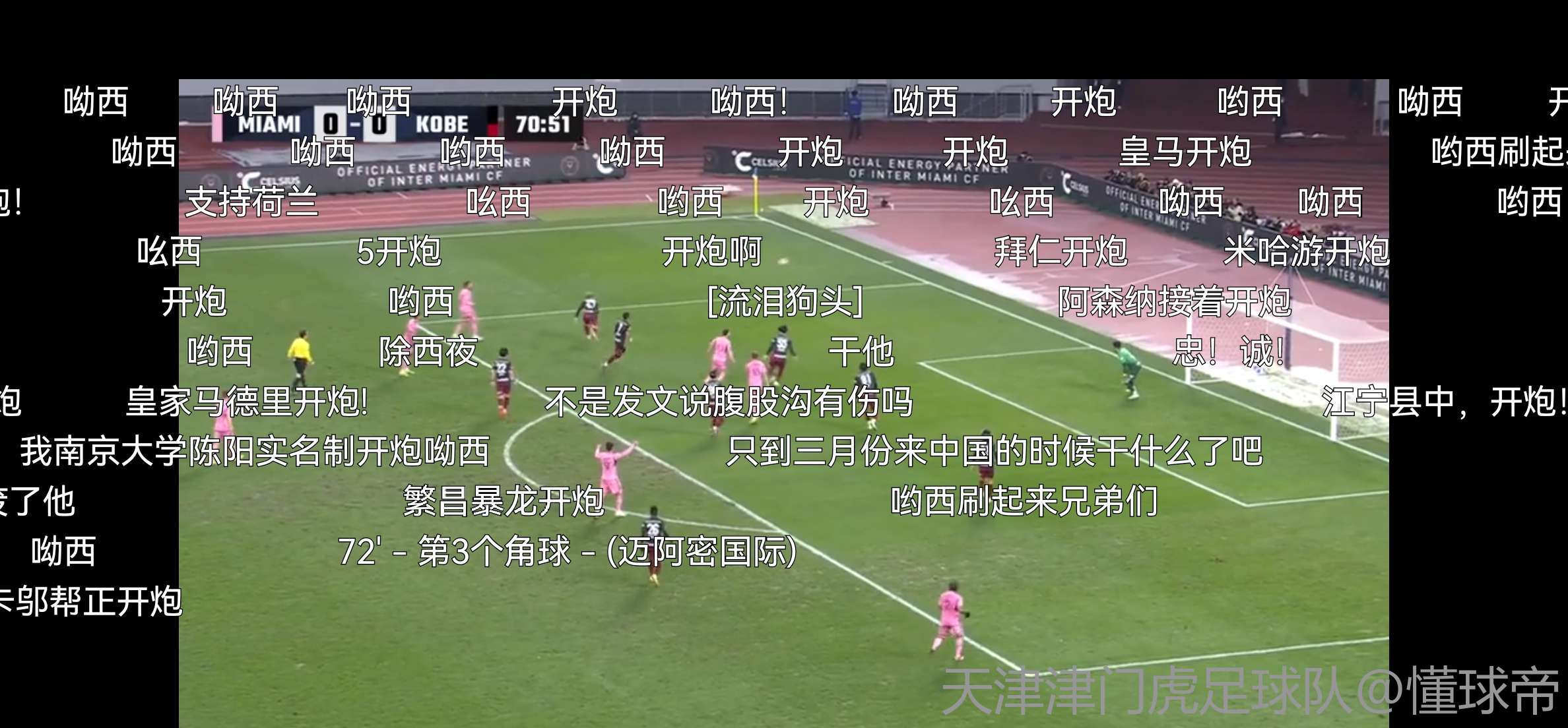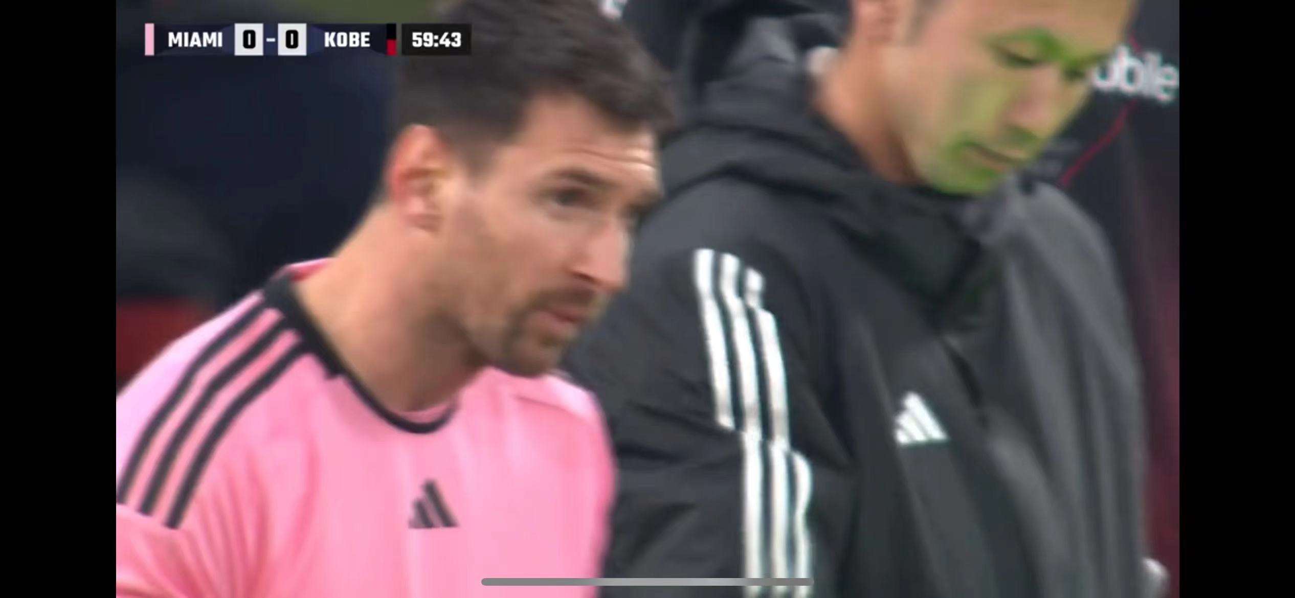第10分钟,神户胜利船球员后点跟进打门踢飞,镜头给到梅西表情