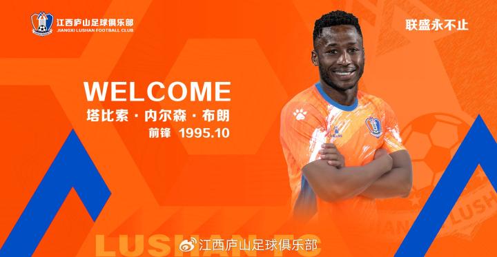 经与球员本人友好协商并达成一致,球员塔比索-内尔森-布朗正式加盟江西庐山足球俱乐部。2024赛季,他将身着橙色战袍,为江西而战!