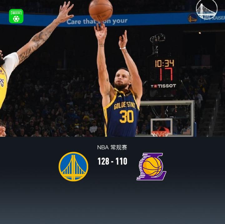 扫描下载懂球帝首页>动态> 詹姆斯缺阵!勇士128-110轻取湖人,库里32+8,浓眉空砍27+15