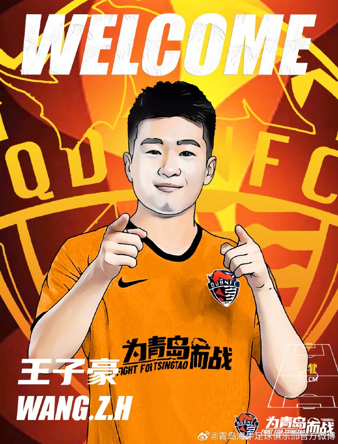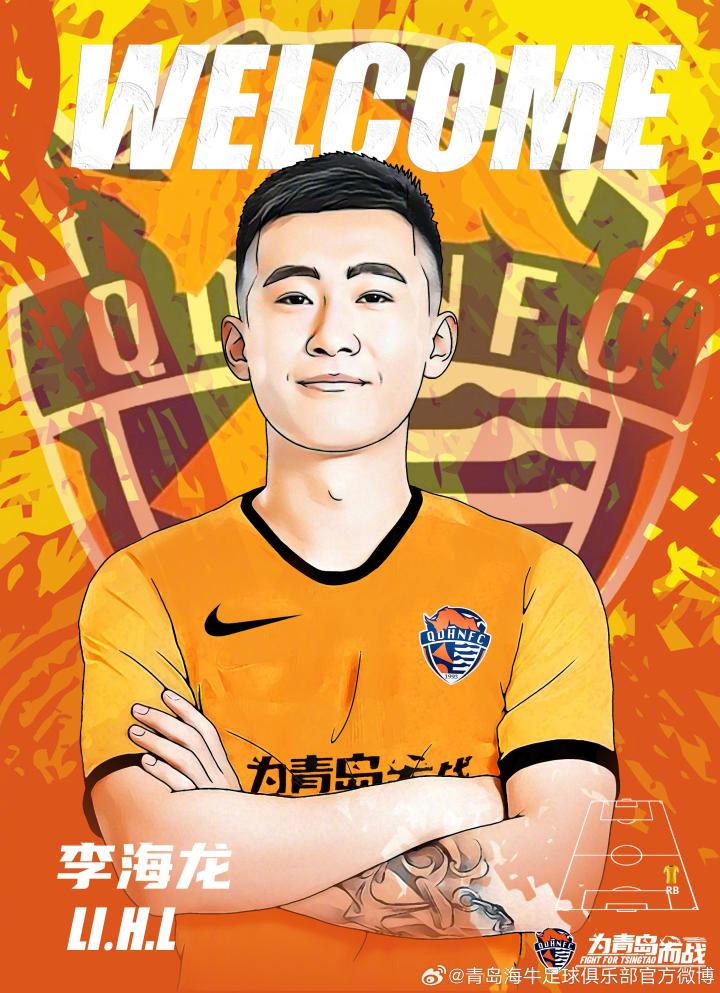 青岛海牛官方宣布,胡靖航、张威、李海龙、王子豪、曹政加盟球队。