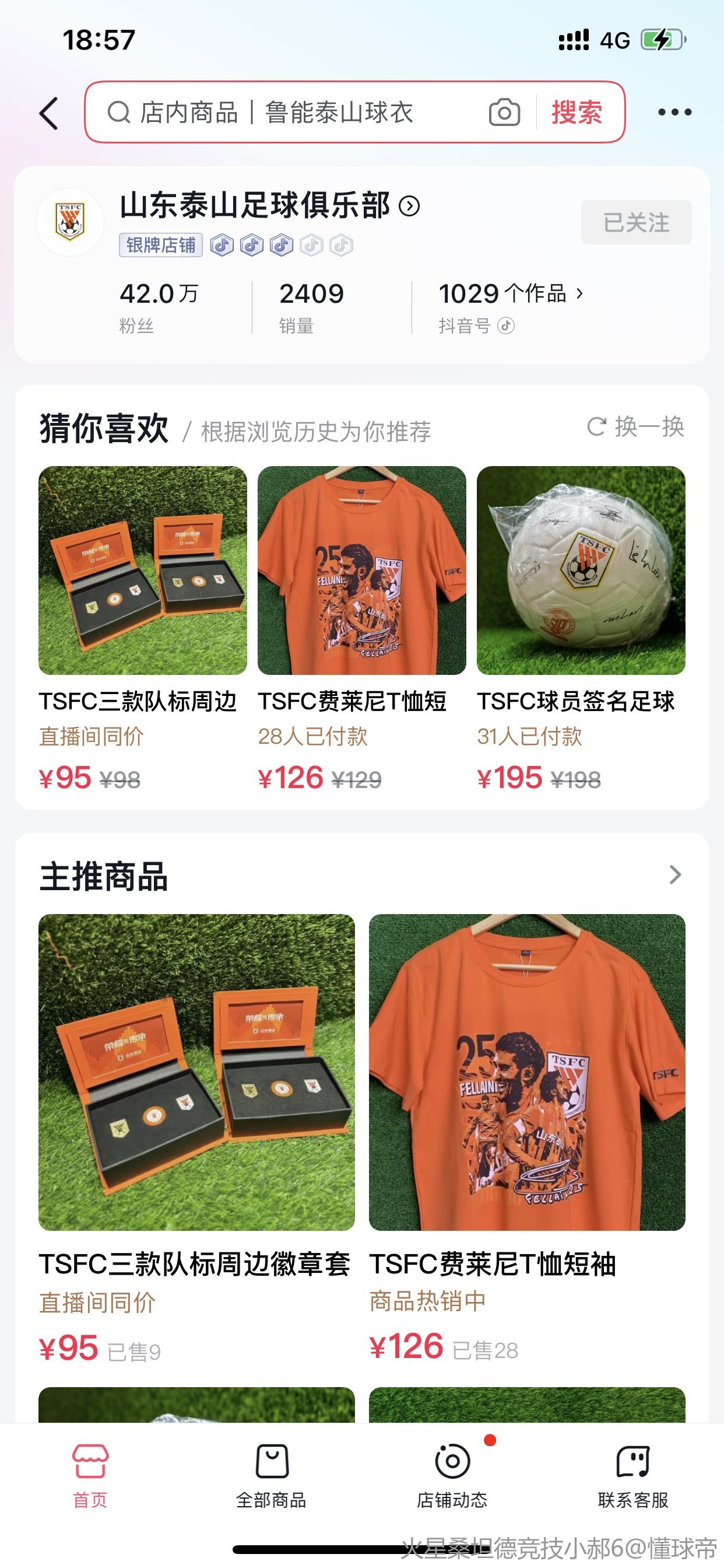 现在各个俱乐部就是要多多开发商务周边,增加比赛日收入,我们球迷也要多在微信公众号、淘宝、京东、抖音的官方旗舰店购买正版产品,支持球队资金周转!