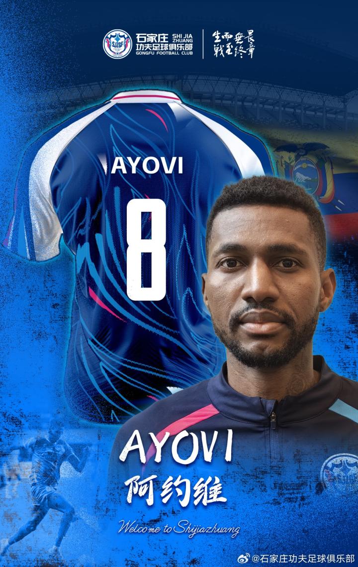 新赛季阿约维将身披8号战袍,我们相信,阿约维将与球队其他球员共同努力,为石家庄球迷带来更多精彩的比赛和胜利!欢迎阿约维继续为石家庄功夫效力!