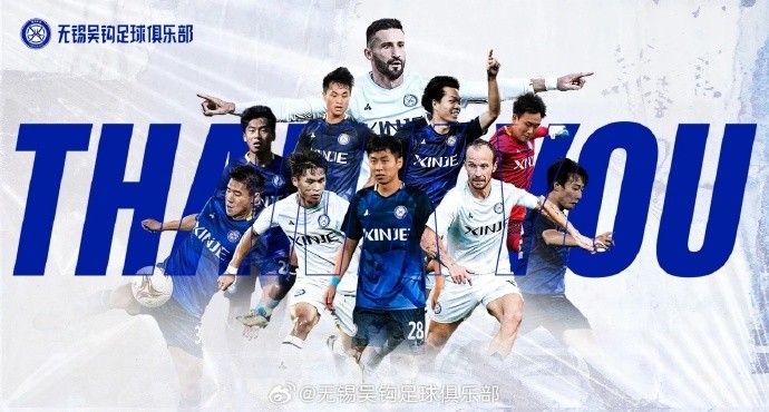 由衷的感谢各位球员在效力无锡吴钩足球俱乐部期间的拼搏付出和倾力奉献,祝愿你们在未来的事业发展中一帆风顺,家庭生活幸福美满!