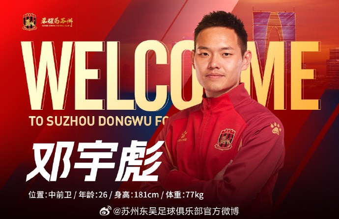 经友好协商并达成一致,球员徐武、金上、刘宇、邓宇彪、尚可风、迪力夏提-阿布力米提、段德智、郭通、向荣峻、艾尼法-亚热马提正式加盟苏州东吴足球俱乐部,为苏州东吴出战新赛季各项赛事。
