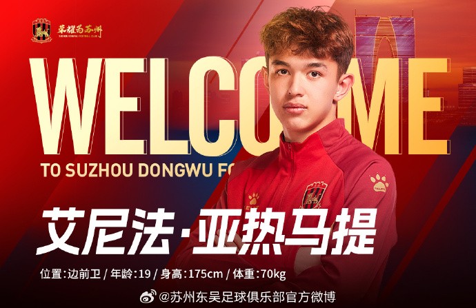 北京时间2月29日,苏州东吴官方宣布,徐武、金上、刘宇、邓宇彪、尚可风、迪力夏提-阿布力米提、段德智、郭通、向荣峻、艾尼法-亚热马提这十名球员加盟球队。