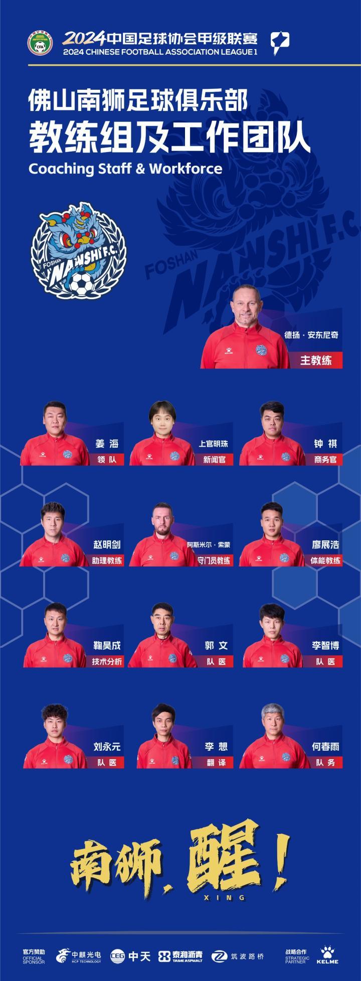 中甲俱乐部佛山南狮官方消息,球员赵明剑兼任球队助理教练。