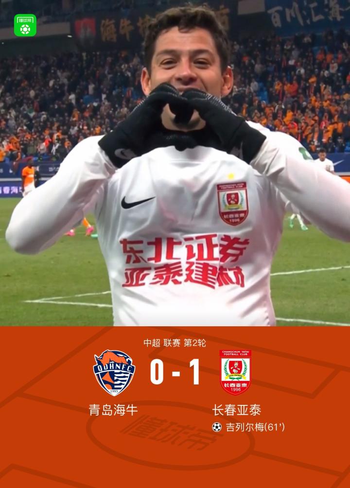 北京时间3月8日中超 联赛 第2轮,青岛海牛主场对阵长春亚泰。上半场萨里奇伤退,半场补时阶段李申圆射门被门将扑出,谭龙补射打高错失良机。下半场贝里奇传中,吉列尔梅门前抢点破门斩获亚泰生涯处子球。最终亚泰1-0客胜海牛迎新赛季首胜,海牛新赛季遭遇两连败。
